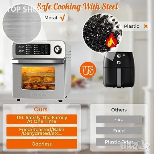 Нов HYSapientia® 15L Въздушна Фурна 10 в 1 - 1700W Електрически Грил → Обява 49203408