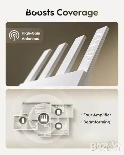 4 външни антени с Beamforming – разширен обхват и стабилен сигнал