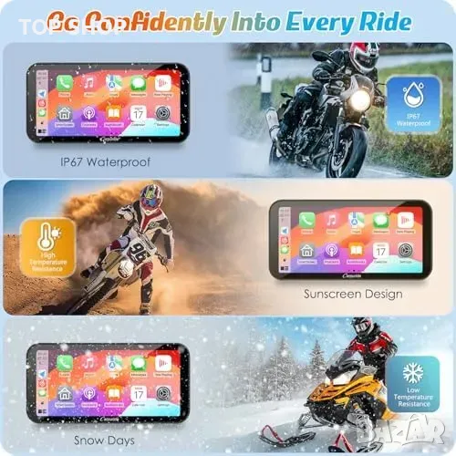Нов Безжичен CarPlay и GPS за Мотоциклети, Водоустойчив 6.3" Дисплей