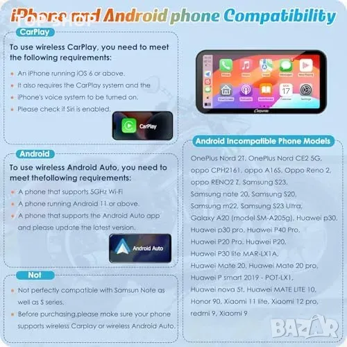 Интелигентна безжична връзка: Поддръжка на CarPlay и Android Auto за навигация, музика и обаждания чрез гласов контрол.