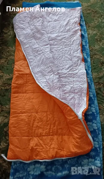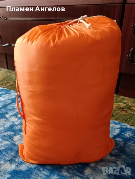 Спален чувал-нов, неизползван за което гарантирам! Размери 175 на75см. Портокалов цвят(светло оранжев). Вътрешната част е снежно бяла, мека и приятна при допир със тялото. Българско производство, с високо качество.