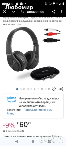 Безжични слушалки Retekess TA005 за телевизор, безжични слушалки за телевизор, вградена акумулаторна батерия, поддържа стерео, AUX и RCA вход, безжични слушалки, висока сила на звука за възрастни хора.Първокласно стерео качество на звука; RF безжични слушалки с богато и автентично качество на звука; без забавяне на звука и точна синхронизация на звука; цифровият сигнал ви гарантира отчетлива висока производителност.Дълъг живот на батерията и лесно зареждане; безжичните слушалки за телевизор са оборудвани с батерия 600 mAh; поддържа 10 часа непрекъснато възпроизвеждане на музика; изисква 3 часа за пълно зареждане.Топли съвети: моля, превключете режима в позицията за настройка на телевизора; не избирайте режим на самостоятелен високоговорител.Функция за заглушаване с един бутон; слушалки за телевизор; много практична функция, когато трябва да изключите звука на слушалките; просто щракнете върху бутона, за да заглушите незабавно безжичните телевизионни слушалки.2 канала с бутонен превключвател; безжични слушалки за телевизор; предавателят може да бъде сдвоен с множество слушалки във всеки канал; съвместим с повечето марки телевизори на пазара; поддържа аудио източник с оптичен кабел и RCA вход.Широко приложение: помага на хора на средна и напреднала възраст с проблеми със слуха при гледане на телевизия; Младите хора гледат мачове през нощта, без да пречат на другите; Елиминира телевизионния шум и поддържа околната среда тиха.Висок комфорт при носене: безжични слушалки за телевизор; меките подложки за уши са ергономични; лек дизайн без усещане за глава; осигурява дълготраен комфорт.Plug and play: слушалки за безжични телевизионни възрастни хора; лесен за използване; слушалки TV безжични; просто свържете аудио кабела към предавателя и телевизионния порт и след това включете всички устройства, за да използвате безжичните телевизионни слушалки