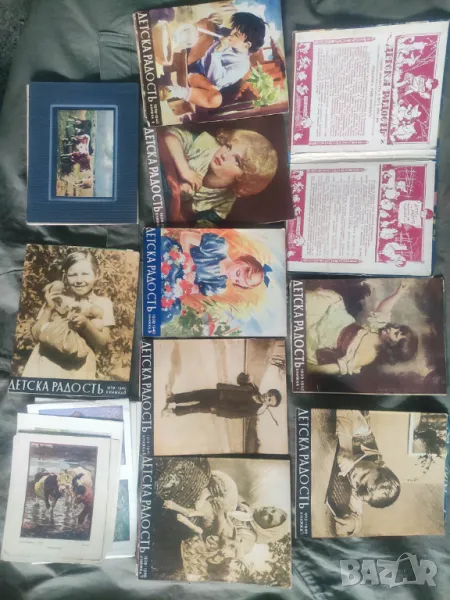 Списание " Детска радост "1939 -40 : 8 книжки " Детска радост" ( 16 стр), 8 вестника ' Врабче" ( 4 стр.) , 8 налично картинки ( приложения , може би няма 1-2 картинки и календар за да е пълен комплекта )