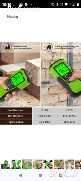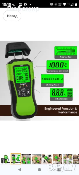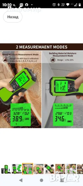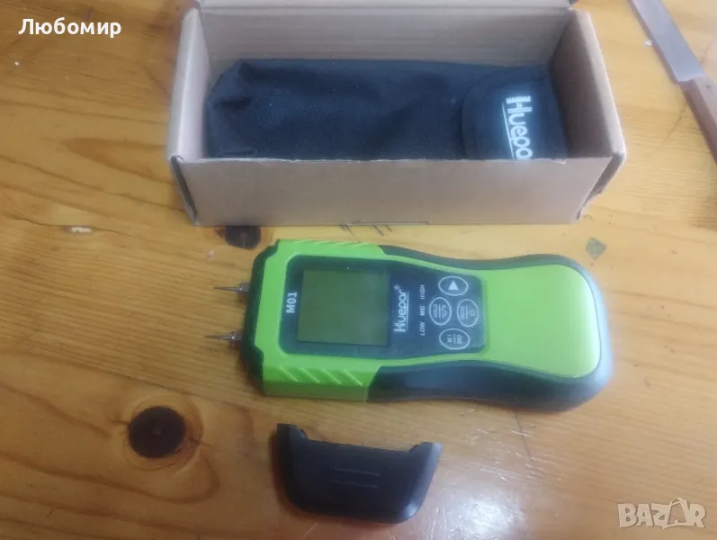 Цифров влагомер за дърво Huepar, щифтов детектор за вода с 2 режима на измерване, 8 вида панаир за влага в дърво с LED дисплей със задно осветяване за проверка на влагата на дърво и строителни материали M01.Точно и бързо измерване: уред за влажност на дърво с 2 високопрецизни и фини метални щифта, които могат да измерват точно на различни дълбочини и да проникнат в повърхността и бързо да измерват съдържанието на влага в дърво, стени и др. 2-те щифта са взаимозаменяеми и в опаковката има 2 нови химикалки за смяна. С помощта на този детектор за влага се откриват скрити течове на вода предварително и това е отлично устройство за собственици на жилища, дърводелци, монтажници на подове и инспектори.Два режима на измерване и 8 дървени везни: помощното средство за самодиагностика, интегрирано в предпазната капачка, гарантира, че устройството е определено функционално преди употреба. Този детектор за влага се предлага с режими за дърво и строителни материали, за да отговори на всички ваши изисквания. Режимът за дърво има 8 калибрирани скали за измерване на различни видове дървесина. С инфрачервения температурен сензор тестерът може да открие и повърхностната температура на материала.Голям диапазон на измерване и нисък средно висок дисплей: дигиталният детектор за влага Huepar предлага широк диапазон на измерване (дърво: 6% -60%, строителни материали: 1,5-33%) с разделителна способност от 0,1%. Предупредителните съобщения за ниска средна и висока влажност и лентата за четене директно показват дали влагата на материала е висока или ниска, а цветните индикатори със зелено (сухо), жълто (умерено) и червено (високо) обикновено показват скалата % съдържание на влага в MC.LCD дисплей с подсветка и лесен за използване: цифровият детектор за влага има голям LCD екран с подсветка и ярка зелена светлина за лесно отчитане. Текущото отчитане може да се задържи на дисплея чрез кратко натискане на бутона HOLD. Освен това има функция за памет, която може да съхранява 20 групи данни. Интегрираната околна температура може да бъде измерена и показана в C или F.