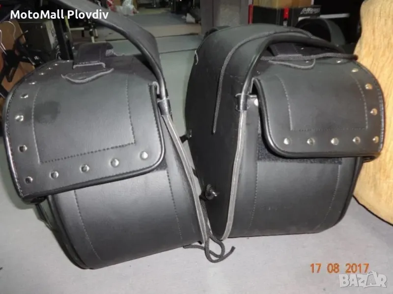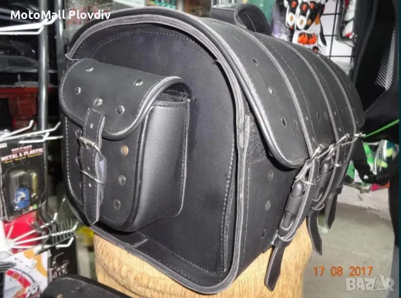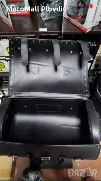 Нови кожен куфар дисаги за чопър рокер мотор мото багаж нови кожени