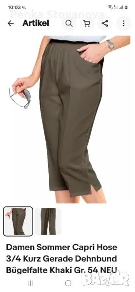 Продавам дамски панталон ⅞, размер 54. Внос от Германия. Чисто нов неразопакован.