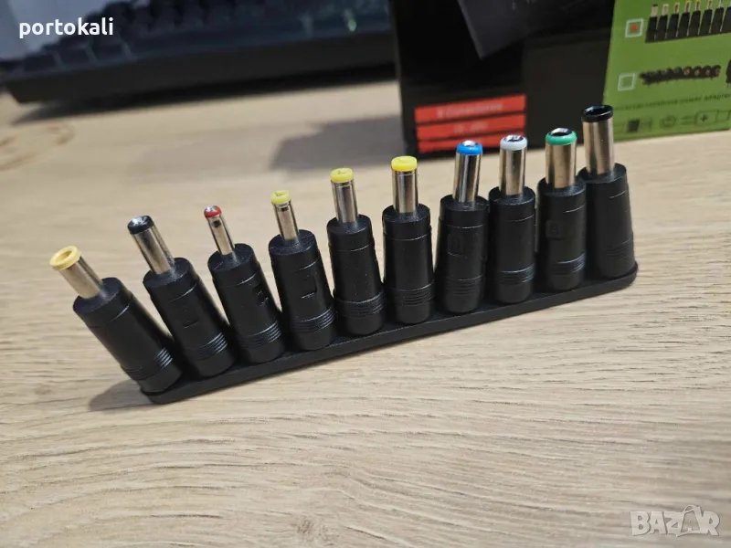 Зарядното е съвместимо с повечето лаптопи. Чисто ново, в кутия. В комплект със захранващ кабел и 10 различни букси за различните модели лаптопи.