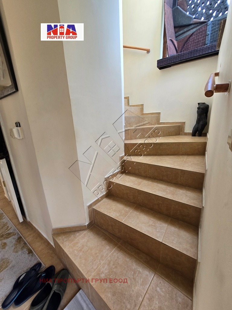 -1 етаж - входно антре, просторна всекидневна с кухненски бокс, толетна, вътрешно стълбище за втория етаж.