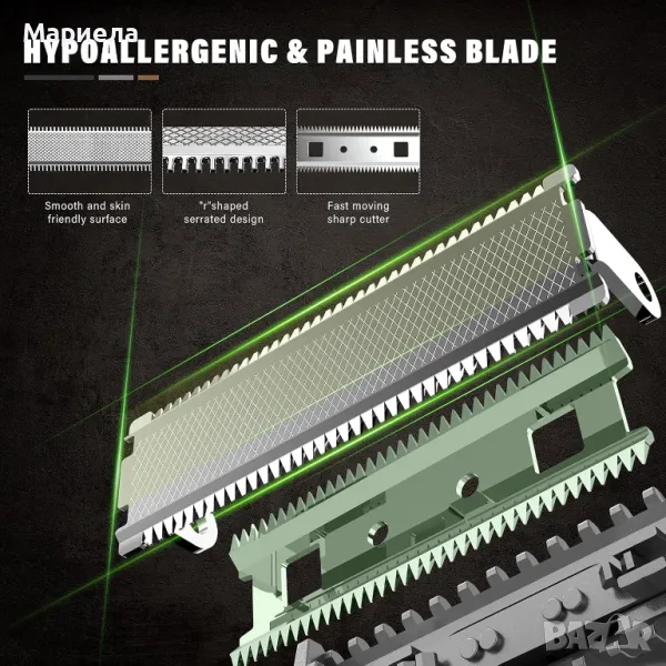 Дизайнът на двустранно острие Ви позволява да се бръснете в двете посоки и да постигнете прецизно.Подходящ за космите по тялото, като гърдите, корема, подмишниците, ръцете, областта на слабините ,
