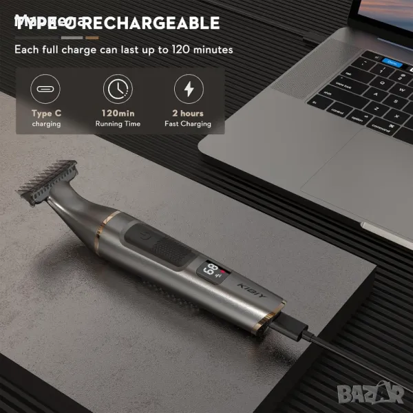 Този тример се предлага с вградена батерия и USB Type-C порт, който поддържа 2 часа бръснене след 2 часа зареждане, удобен за бизнес пътувания и няма нужда да се притеснявате за кабела за зареждане. Дизайнът с ниско ниво на шум ви позволява удобно бръснене.