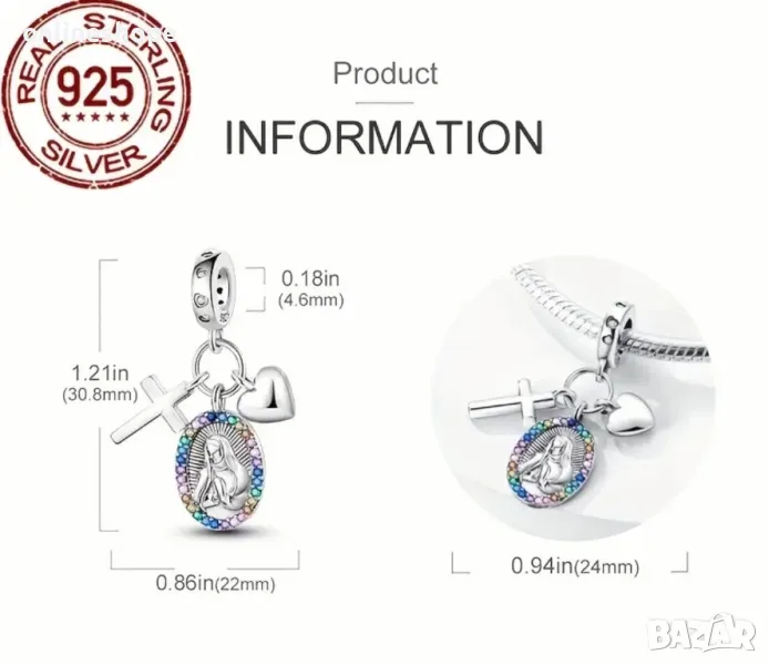 Добавете стил и индивидуалност към своята гривна с висококачествени сребърни талисмани S925. Изработени от стерлингово сребро, тези талисмани са идеалното допълнение към всяка колекция.