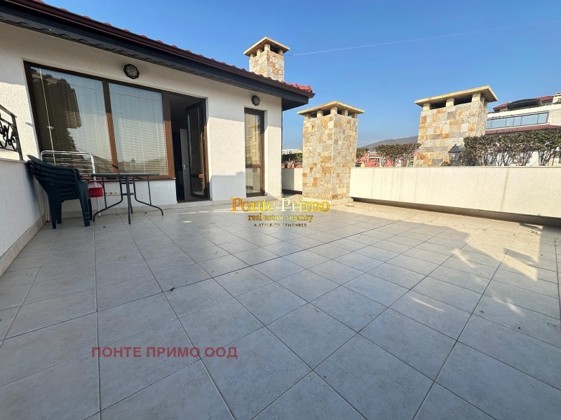 Предлагаме за продажба луксозно обзаведен мезонет в уникален комплекс, който впечатлява със своята елегантност, изтънченост и ненатрапчив лукс. Разположен е на Черноморското крайбрежие с невероятна гледка на морския пейзаж и величествената Стара планина в прекрасното курортно градче Свети Влас. Комплексът съчетава уникален архитектурен стил, впечатляващ интериор и ландшафтно проектиране! Тук можете да се разходите под сянката на дърветата, да седнете и да се отпуснете в приказните шатри, както и в места за уединение с меки и удобни матраци. Мезонета , който предлагаме се намира на пети и шести етаж и е напълно обзаведен и оборудван с техника премиум клас и мебели по-поръчка. Състои се от просторна всекидневна с кухненски бокс, две спални, една баня и три балкона с гледка към необятната морска шир и Стара планина от другата страна. От всяка тераса и стая се открива невероятна гледка и към старинният град Несебър. На територията на комплекса има много красиви статуи, дървета, и фоайе с вито стълбище, декорирано с парапети от ковано желязо. Фоайе е пряко свързано с външен басейн. Комплекса разполага с автентична работеща и единствена , руска баня. Комплекса разполага и с прекрасен басейн както за възрастни, така и с детска секция към него за малчуганите . Комплекса разполага и с детски кът в , който са поставени парзалки, люлки, катерушки и други забавления за малки и големи. Така , че престоят Ви да бъде максимално приятен. На територията на комплекса има безплатен Wi-Fi. Плюшени шезлонги и чадъри , балдахинови шатри за отдих са само допълнение към лукса. Подземен паркинг - за 80 автомобила. Места за паркиране около комплекса които са за собствениците на имот в него. 24-часова целогодишна охрана и видео наблюдение в комплекса; - Поддържане и почистване на зелените площи, както и на зоните около басейните; - Почистване на общите части; - Рецепция и портиер; - Общи части и асансьори с уникален интериорен дизайн; - Целогодишно обслужване и управление на собствеността в комплекса; - Транспорт до / от летищата на Бургас и Варна. Комплексът има Акт 16. Предлаганият имот е със самостоятелни партиди за електричество и вода. До морският бряг са 150м.