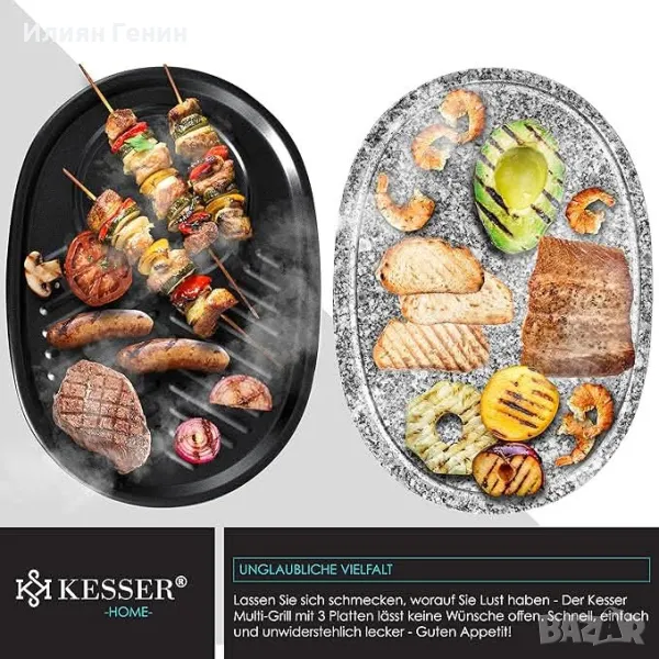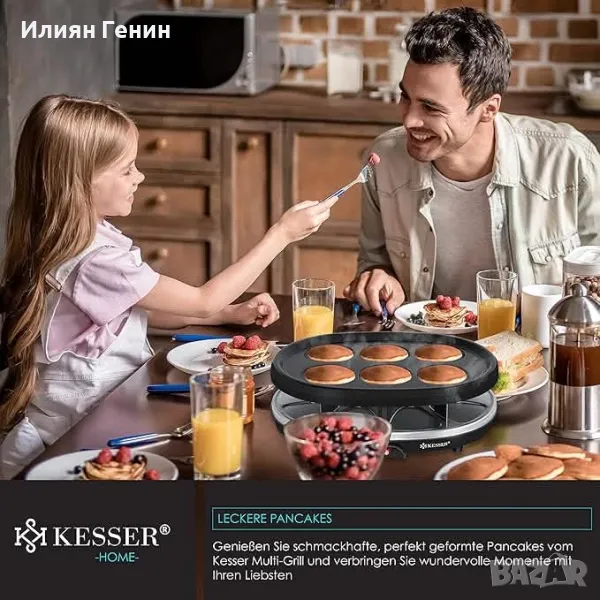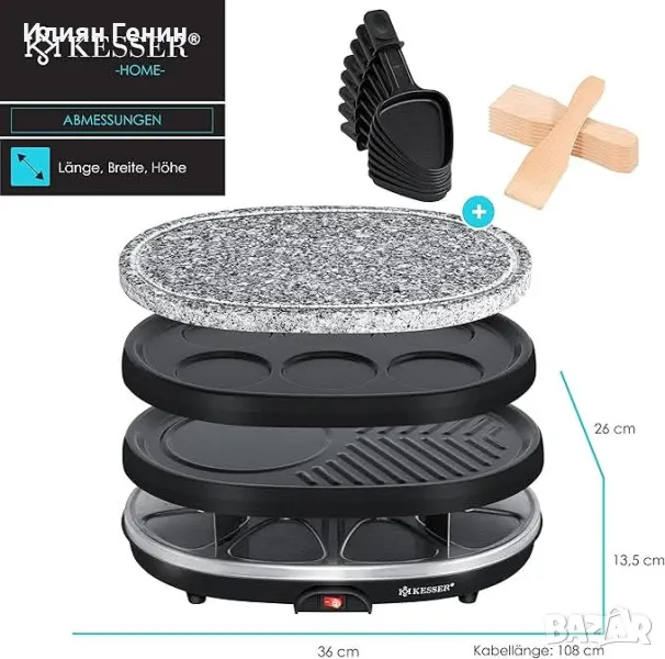KESSER® Раклет грил 3в1 с естествен камък, грил плоча и настолен грил за палачинки за 8 души, електрическа скара с незалепваща плоча, 8 тигана - 180.00лв.