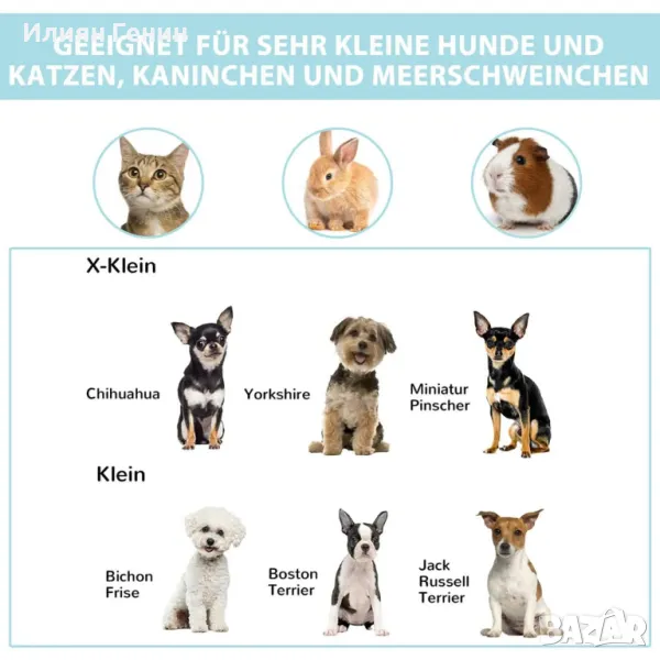 ✔ Подходящ за кученца (до 10 кг, 40 см височина на раменете), котки, зайци, морски свинчета и други малки животни
