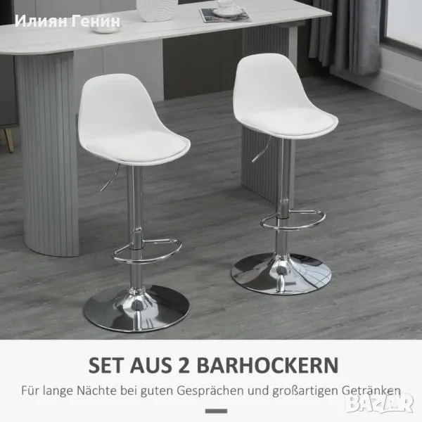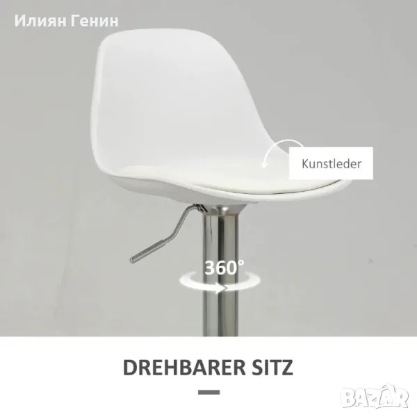 бар стола, въртящи се столове с облегалка, регулируема височина, товароносимост до 120 кг, 38 х 42 х 82-104 см, бял - 280.00лв.