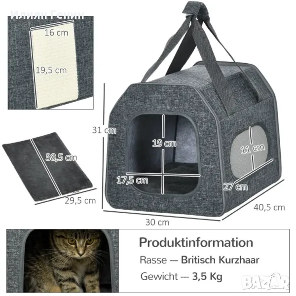 Подходяща за котки с тегло 5 кг. - Не се изисква сглобяване