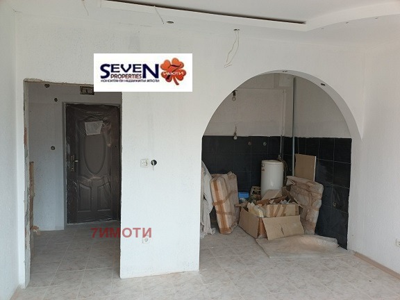 Представяме Ви: ЕКСКЛУЗИВНО: двустайно жилище, разпределено в: коридор, дневна с кухненски бокс, санитарно помещение, стая с вход към санитарното помещение и прилежащи: таван=7кв.м. и мазе=5кв.м. Изцяло юг. Ремонтиран. Сменена дограма. Във входа има газ.