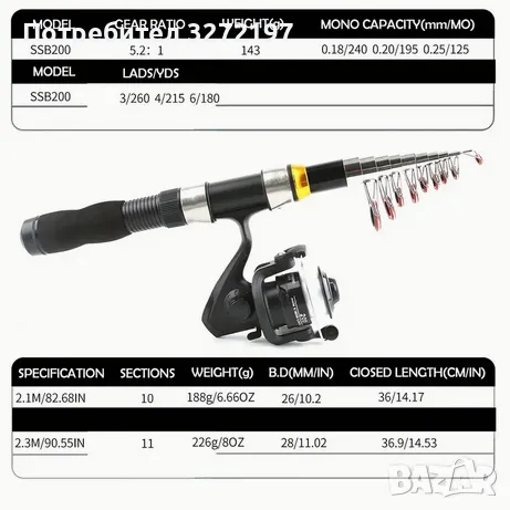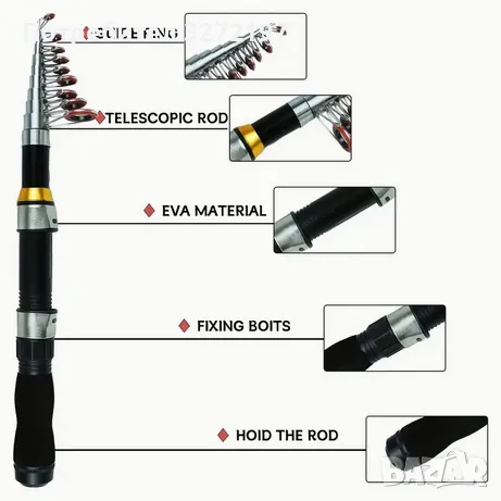 • Телескопичен дизайн: Въдиците могат да се удължават до определена