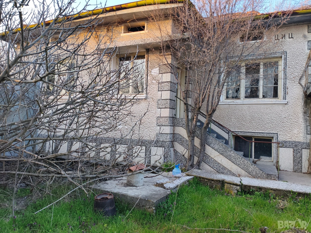 Това не е просто селска къща - това е имот със страхотен потенциал за реновиране: двойна жилищна сграда ~150 m² (за ремонт), допълнителни постройки, гараж, две сонди и голям УПИ 1400 m²