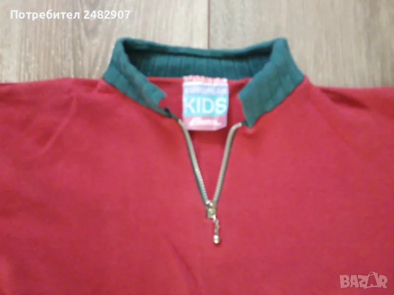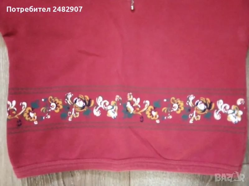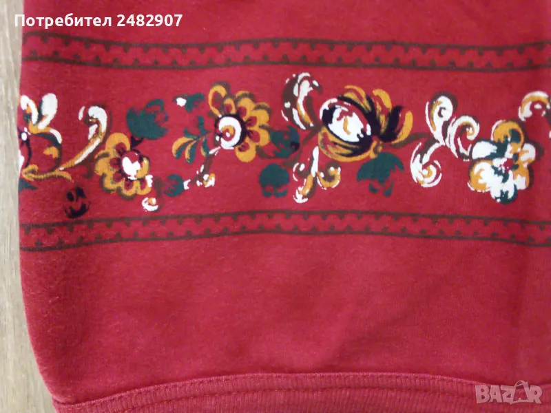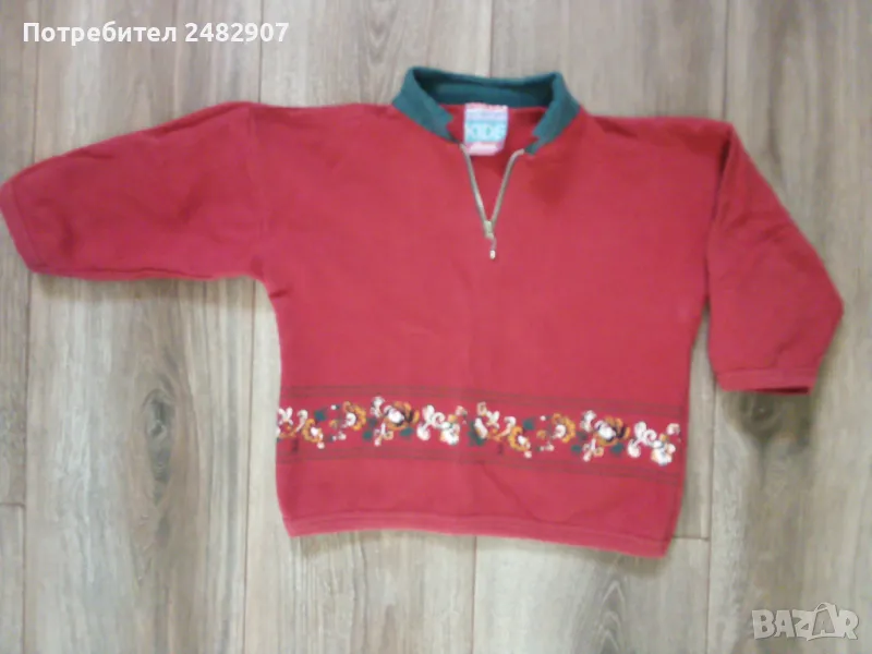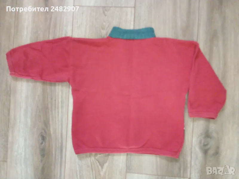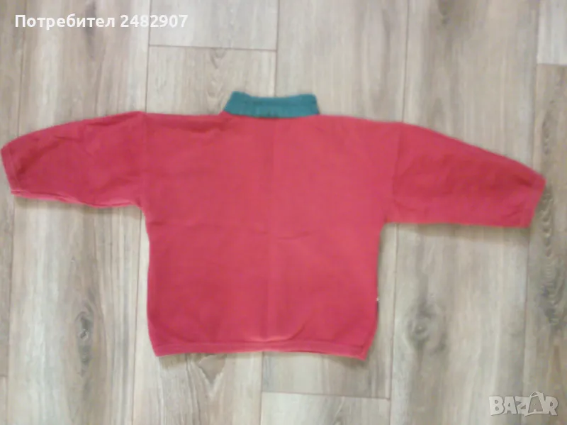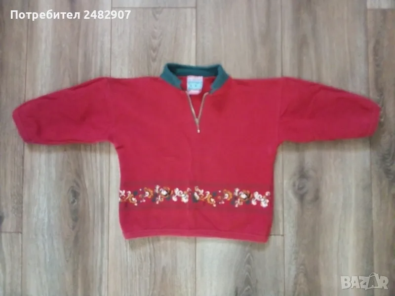 Червена детска блуза за момиче с цип и щампа за ръст - 92 см. Съдържа 100 % памук. Ширина в раменете - 37,5 см, ширина под мишниците - 37 см, ширина в долната част - 33 см, дължина от рамото до долу - 37 см, дължина на ръкава от рамото - 22,5 см, ширина на ръкава в долната част - 8 см. Много запазена, почти не е използвана.