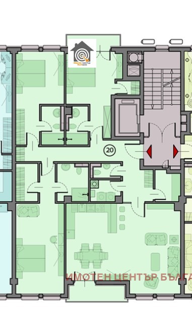 Имотът е ситуиран на четвърти жилищен етаж и е с изложение юг-изток.Чистата жилищна площ е 166.57кв.м разпределени по следния начин: