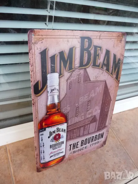 Метална табела уиски Jim Beam Bourbon since 1975 дестилерия бутилка рекламна
