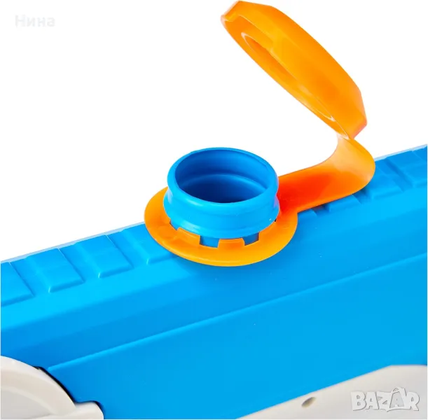 Разполага с 2 вертикално подредени отвора, които чрез помпа освобождават 2 непрекъснати яки струи вода 🌊💧 С водния бластер Barracuda бойците със Super Soaker разполагат с резервоар от 1 литър за лесно постигане на водна победа 🏆