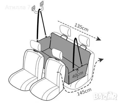 • Лесен монтаж и универсален размер – Регулируемите ремъци и здравите щипки позволяват бързо и сигурно закрепване към седалките. Подходящ е за всички модели автомобили, джипове и SUV.