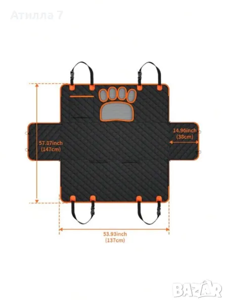 • Пълна защита – Изработен от висококачествен, водоустойчив и устойчив на замърсявания материал, този калъф предпазва тапицерията на автомобила от кални лапи, козина и разливания.