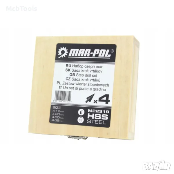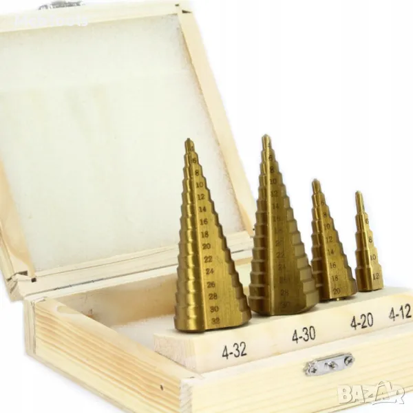 Комплект конусовидни свредла 4 части в дървена кутия Mar-Pol
