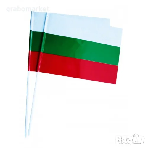 Българско знаменце 16 х 22 см, със пластмасова пръчица. Знамето е двустранно напечатано. Националният трибагреник без герб.