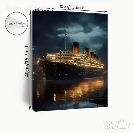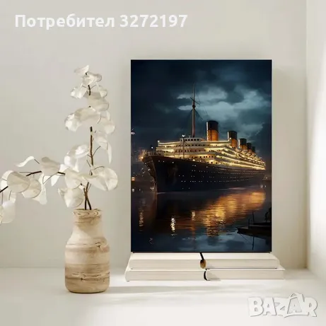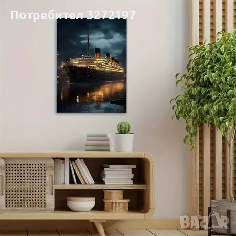 Красива картина Титаник,готова за окачване в Спалнята, Дневната или друга Домашна,Стена с дървена рамка.Средиземноморски стил, декорация за стена за спалня, офис, бар, хол, класна стая, кафене, музикална зала и др.