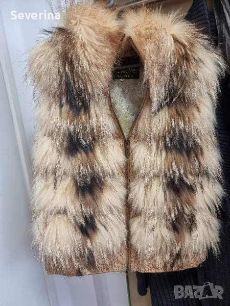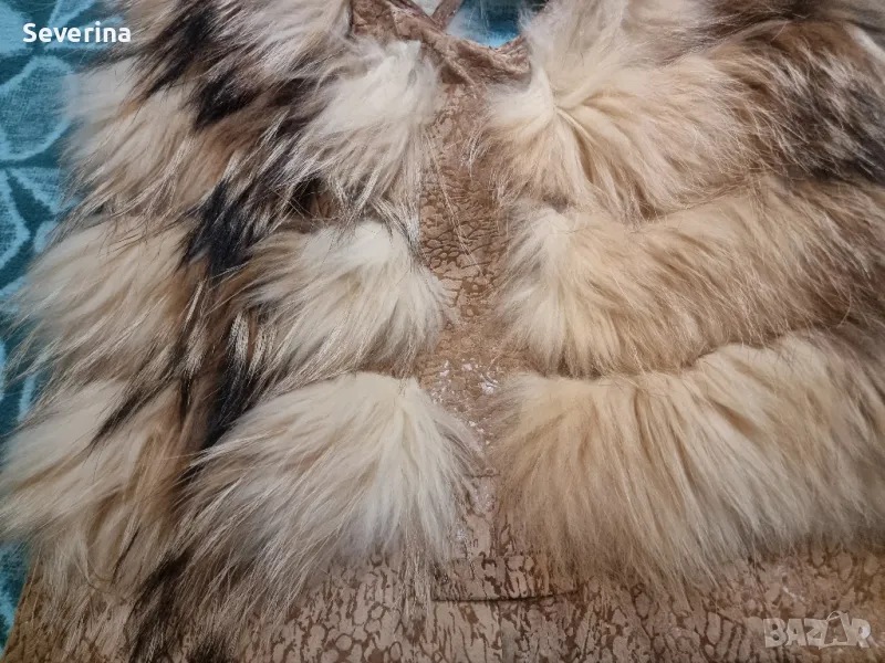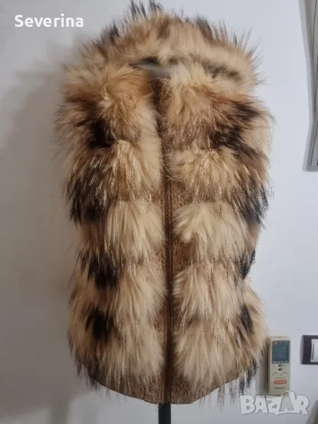 Невероятен елек, с естествен косъм от ракун,комбинация с естествена кожа,с качулка на неизвестния бранд Русский мех, Росссия,Москва.