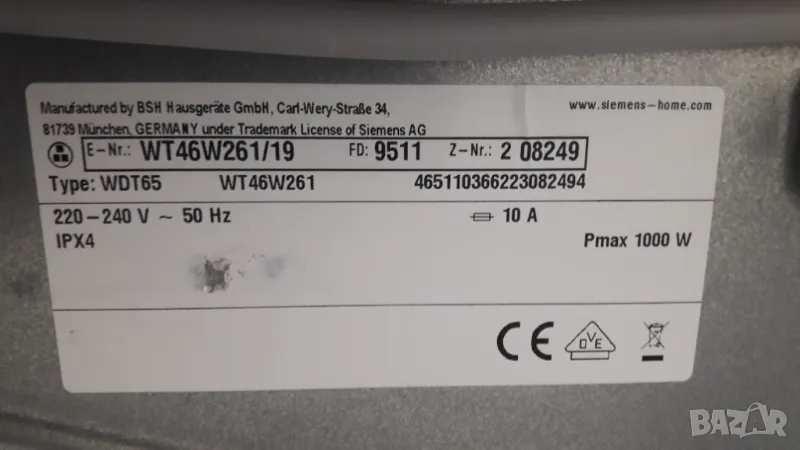 Сушилня SIEMENS Термопомпа, снимка 1 - Сушилни - 49213649 Сушилня SIEMENS Термопомпа, снимка 2 - Сушилни - 49213649 Сушилня SIEMENS Термопомпа, снимка 3 - Сушилни - 49213649 1/3