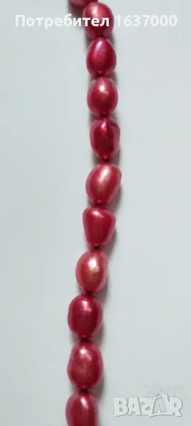 Колие от естествени сладководни перли в червен цвят. Дължина на колието 45см., дължина на перлата 1см., закопчалка сребро 925