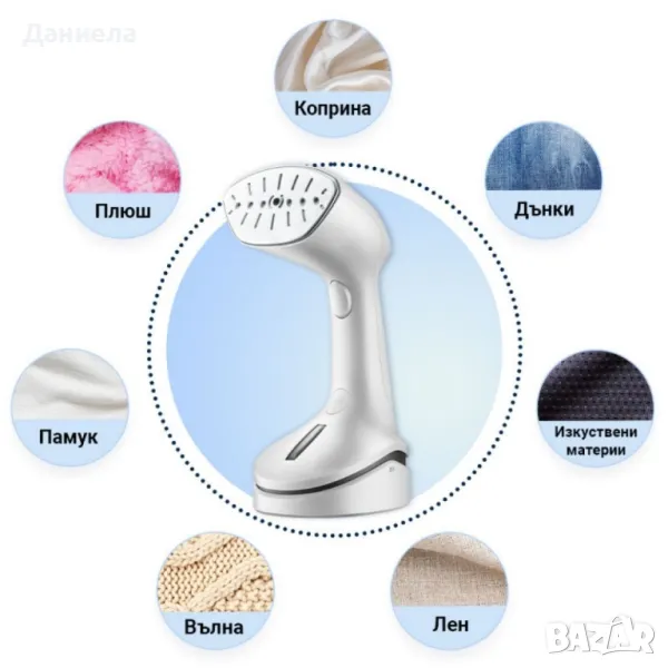 Уред за вертикално гладене с пара. Постигане на непрекъснато генериране на пара 10-15 г/ мин. Контрол за работа: сухо гладене/ пара/ термостат. Капацитет на резервоар за водата: 200 мл. Обща дължина на кабела 2м. Време за нагряване 3 сек. Време за използване при максимално ниво на водата - около 10 мин. Захранване: 220-240V~, 50-60Hz, 1000W; 2г. гаранция