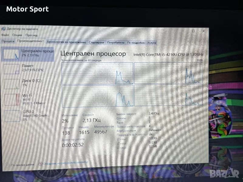 Процесор:Intel Core i5 4210U по 2,40GHz.