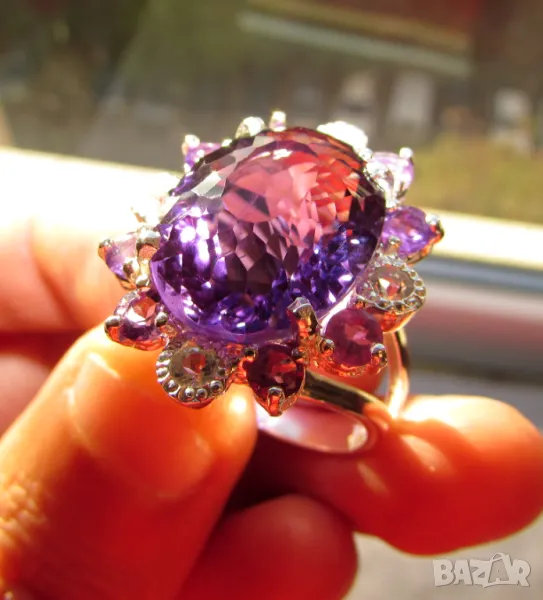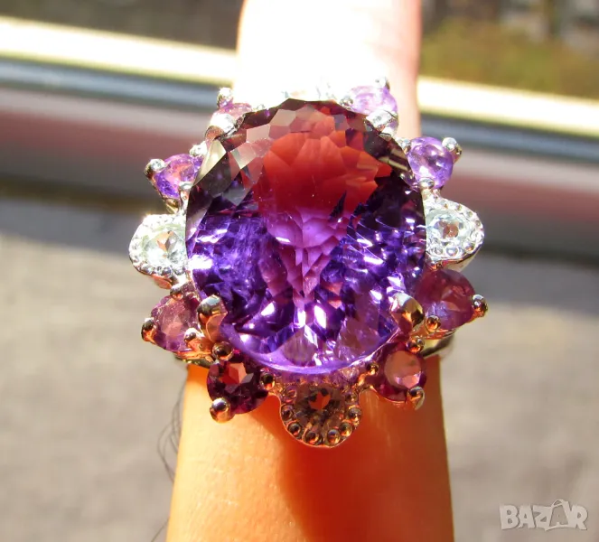 925 сребърен привлекателен пръстен с аметист 18 карата 18x14мм, тегло 11гр. подходящ за подарък → Обява 49214943