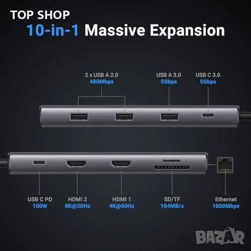 Нов UGREEN Revodok Pro USB C Hub: 10-в-1 Станция, HDMI 4K&8K
