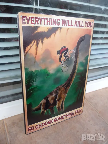 Метална табела футбол Всичко може да те убие избери забавно колео динозавър байк спускане