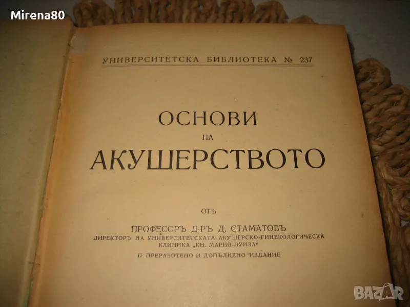 Едно почти антикварно, луксозно издание. Изд Университетска печатница, София - 1941 г. Автор - проф. д-р Д. Стаматов (директор на Университетстката акушеро-гинекологична клиника " Княгиня Мария-Луиза"). Твърди корици, кожени лице и гръб. 815 стр. Книгата е в отлично състояние, като нова. Истинска находка за колекционери !