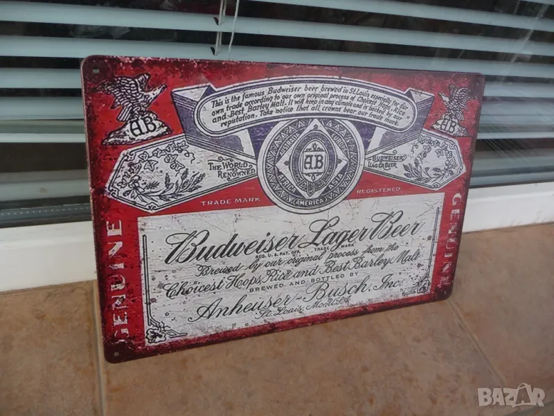 Метална табела Budweiser Lager beer истинска бира хубава етикет бирен