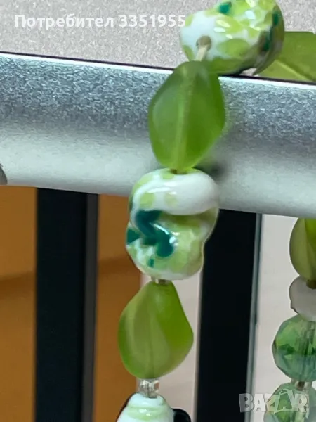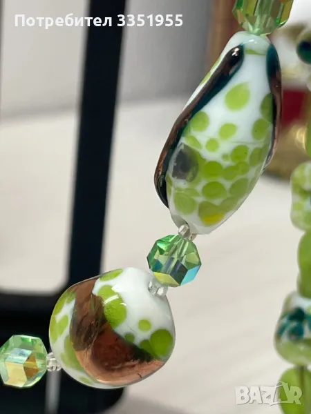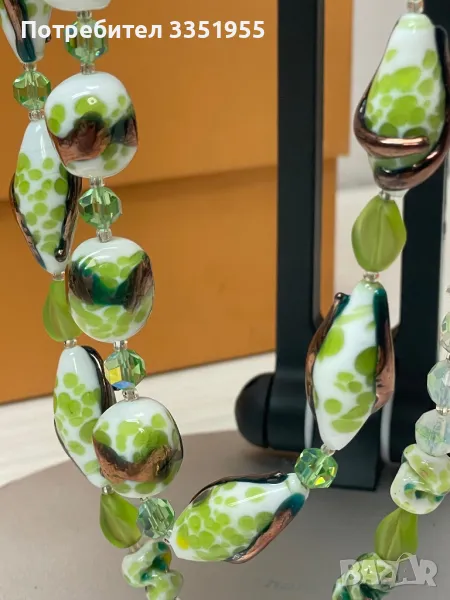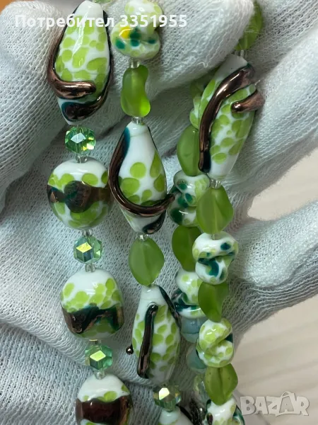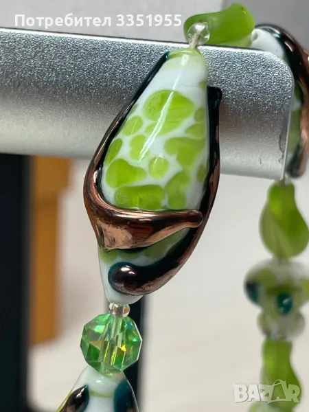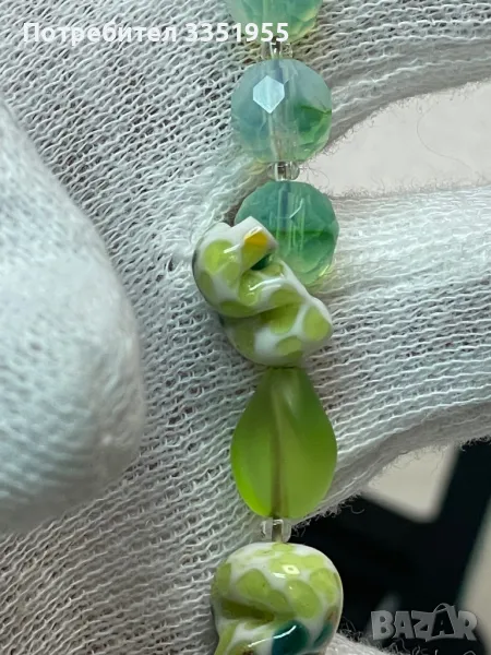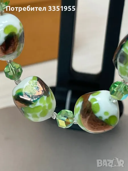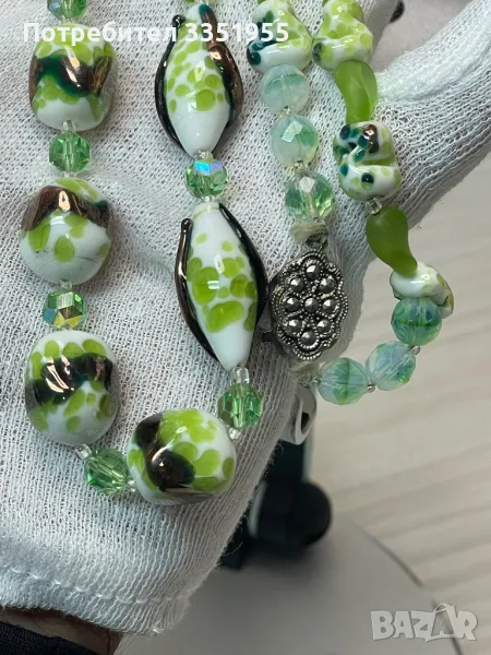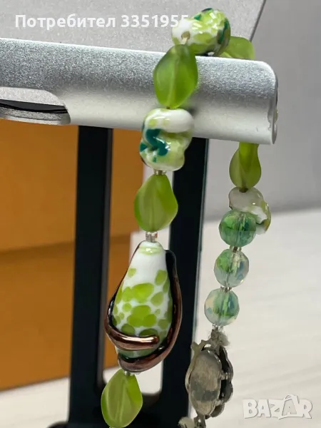 Уникална ръчна изработка от стъкло и сребърна закопчалка с маркезити, няма следи да е ползвана. Пращам с Еконт и опция за преглед.