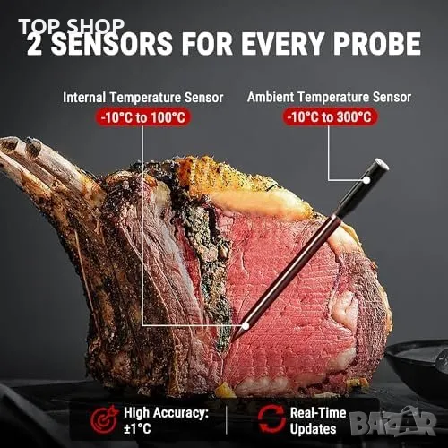 Нов безжичен Bluetooth термометър за месо с 2 сонди за печене скара готвене Смарт контрол → Обява 49217050