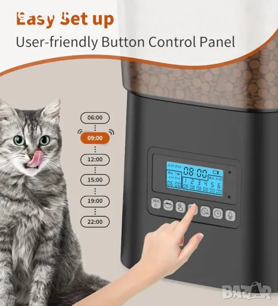 [10s Customized Meal’s Calling]Можете да запишете 10s персонализирано гласово съобщение, което се възпроизвежда при всяко хранене, за да уведомите вашия домашен любимец кога е време за ядене. И той не се чувства самотен, тъй като може да чуе гласовия ви запис. Можете също така да деактивирате звука на записващото устройство за вашия интелигентен домашен любимец, това означава, че можете да спите добре през уикендите, той просто ще служи на домашния любимец без напомняне за съобщение.