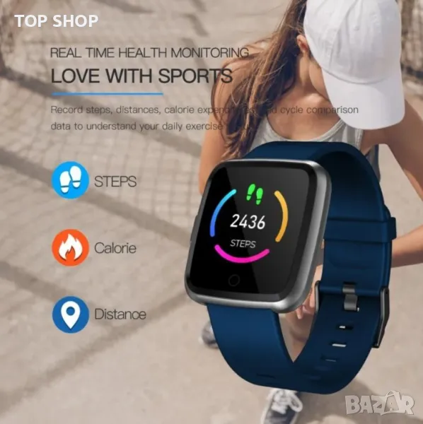 Фитнес и други функции: Педометър, запис на калории, мониторинг на качеството на съня, времето, синхронизиране на дата и час, SNS известия, напомняне за пиене на вода, предупреждение за заседнал начин, отдалечена камера и т.н.