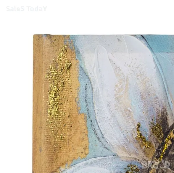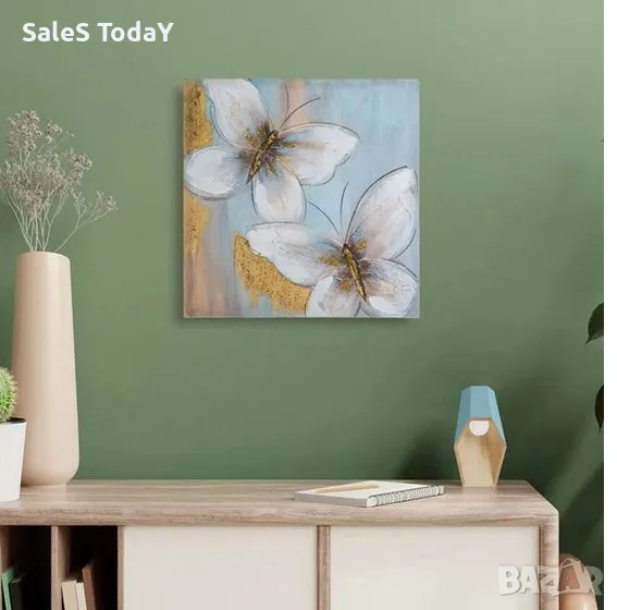 Декоративна картина с дървена рамка и платно за маслена живопис с дизайн на пеперуда и златни блестящи детайли. Дължина x Ширина x Височина 40х40х1,8см