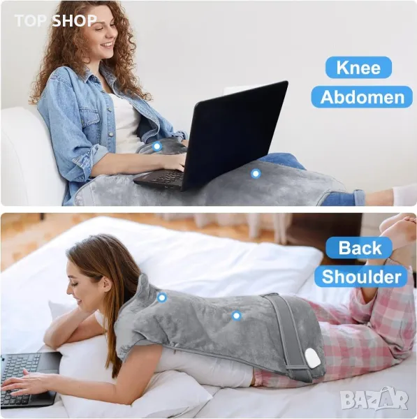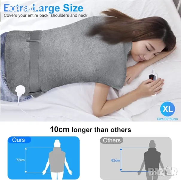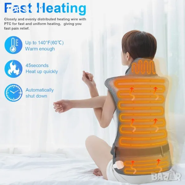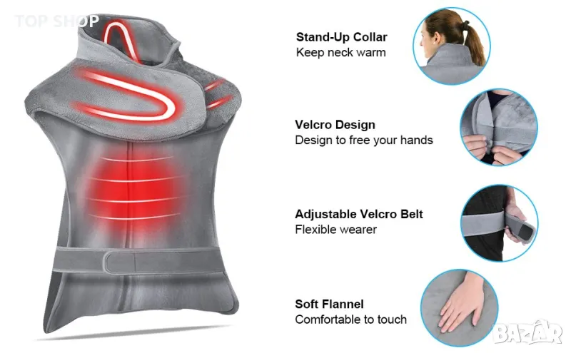 【Насочено нагряване навсякъде】 Нагревателните подложки за врата и раменете са проектирани с лесни за инсталиране бутони, така че можете да получите насочена топлина там, където имате нужда.
