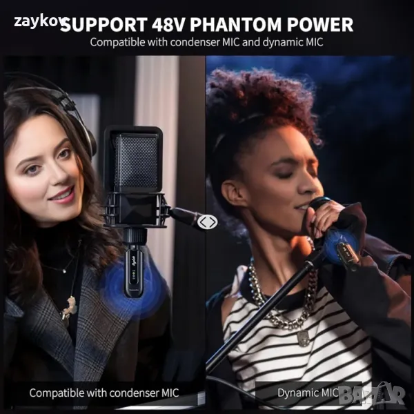 Широко приложение: Просто включете и пуснете, няма нужда да правите много настройки. Съвместим с много XLR устройства като динамичен, кондензаторен микрофон, безжична микрофонна система,
