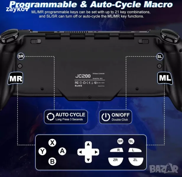 Прецизен контрол на движението и батерия с голям капацитет от 1000 mAh: контролът на движението работи перфектно, 6-осов жироскопичен чип, прецизен контрол на движението, който е идеален за състезателни игри. С напълно заредена батерия от 1000 mAh можете да играете около 10 часа. Този контролер за превключване може да поддържа Bluetooth връзка "Keylinker" приложение за регулиране на бутоните на джойстика, мъртвата зона на джойстика, вибрация, надстройка. Забележка: не поддържа NFC функция. Не HD тътен.